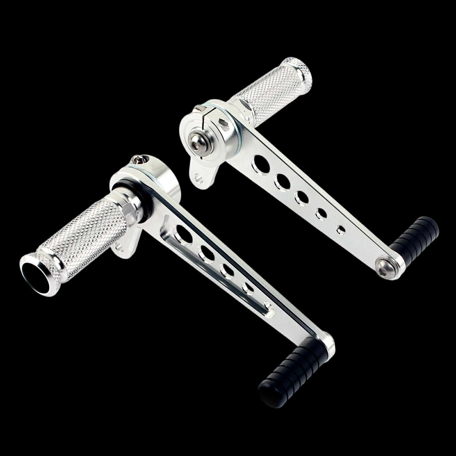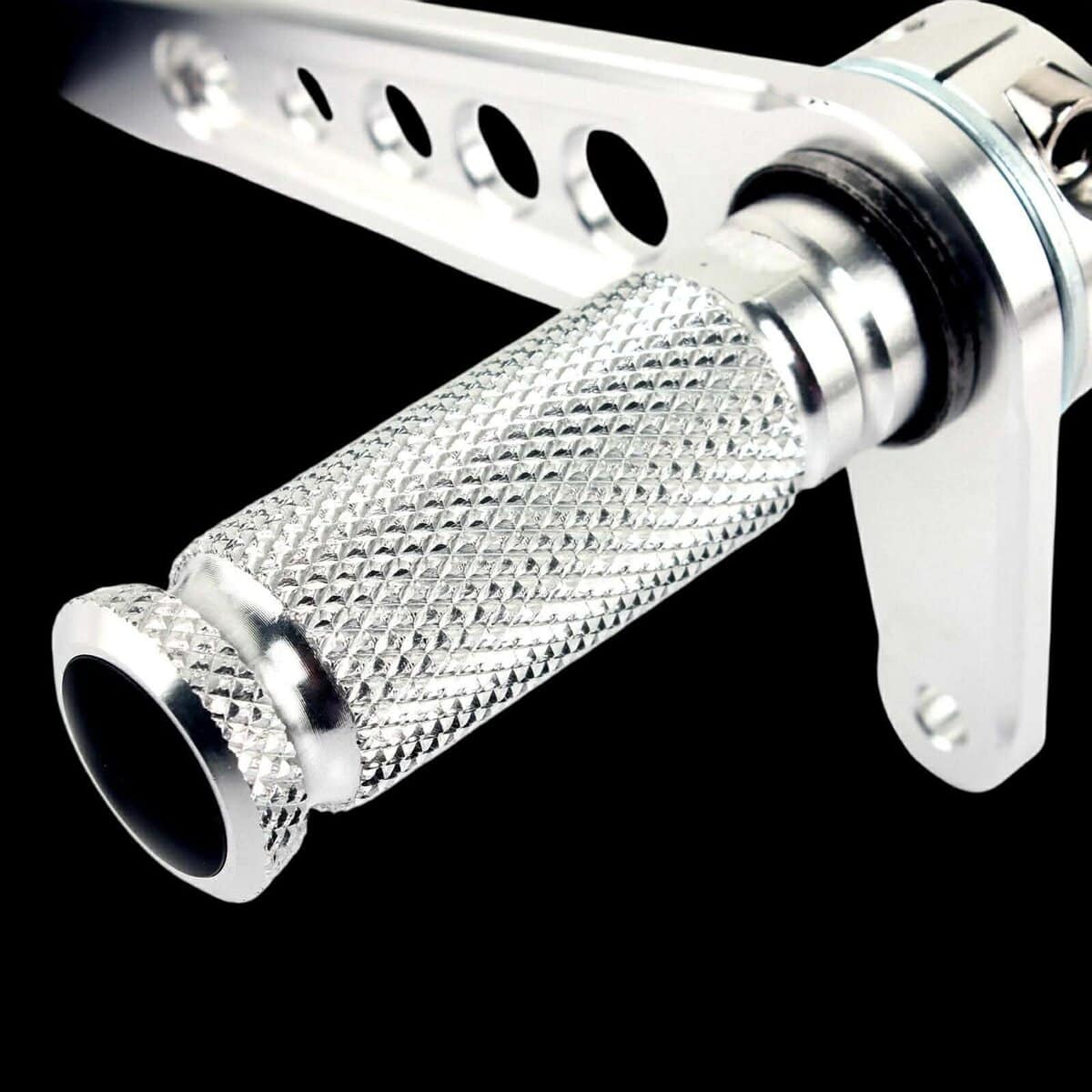These are made from 6061 aluminum and are Silver but can offer Black as well, they are priced super low and great for a fast build when you cannot find anything out there, these can pretty much go where ever you want on your bike, you just need to fabricate the brake arm and what I do is cut the brake lever off but keep the broaching part, weld a straight piece of metal on the top and drill a 6mm hole to you can fit the rear set bracket to your workable position, then using either flat bar or round stock, attach both parts together and there you go, pretty easy.