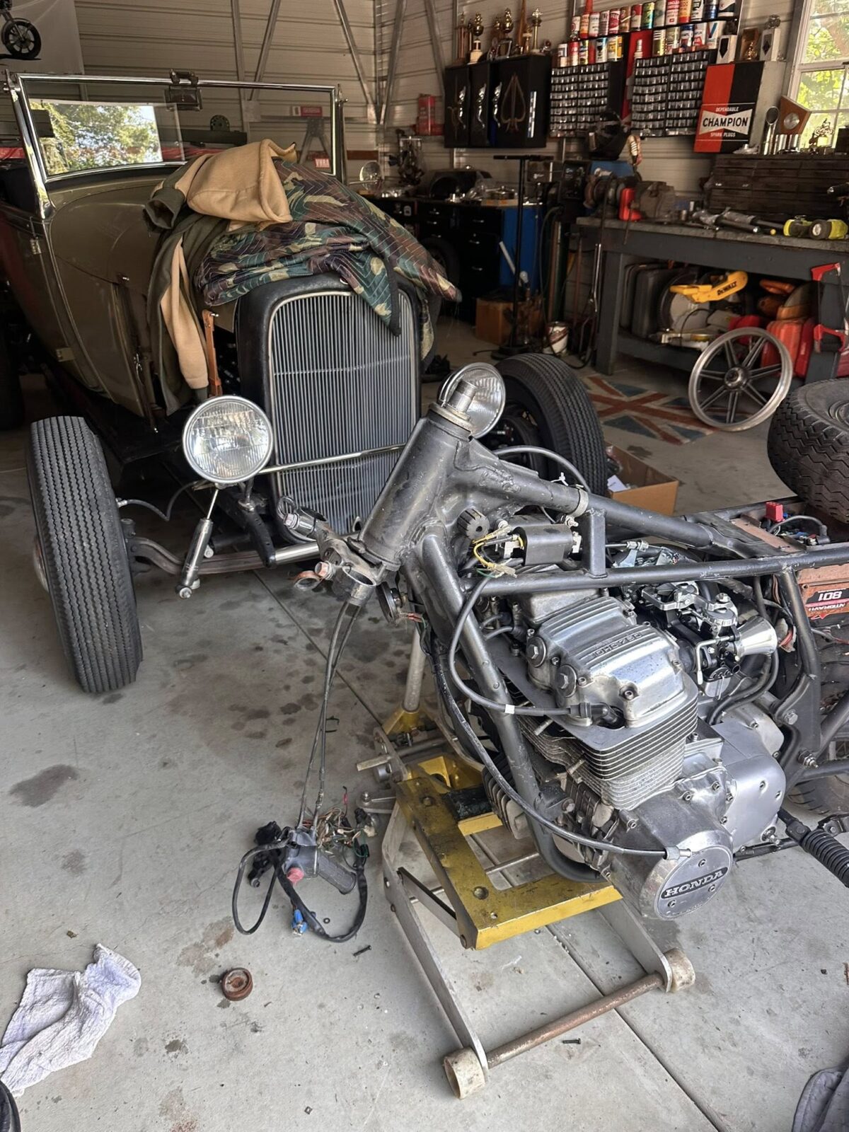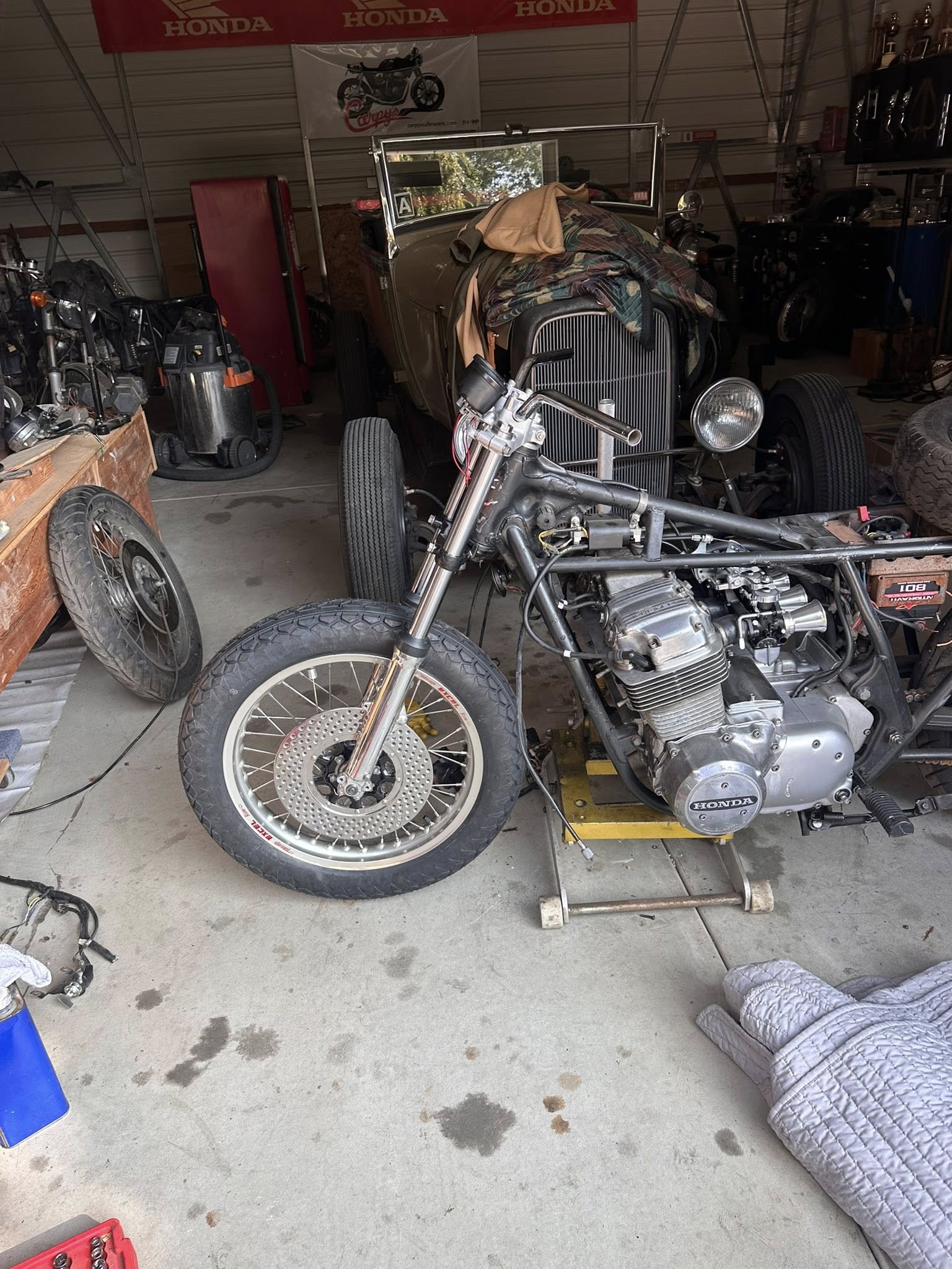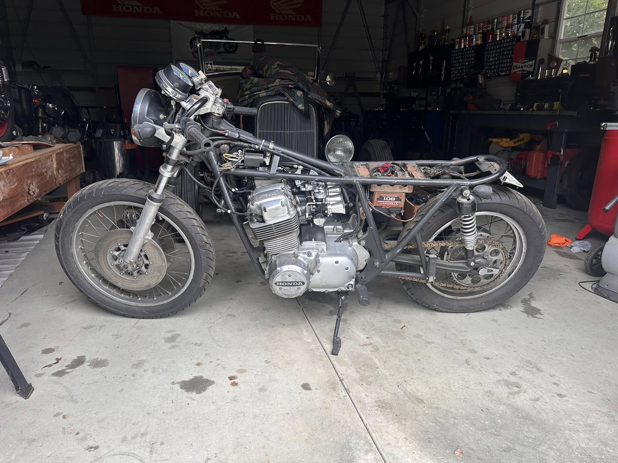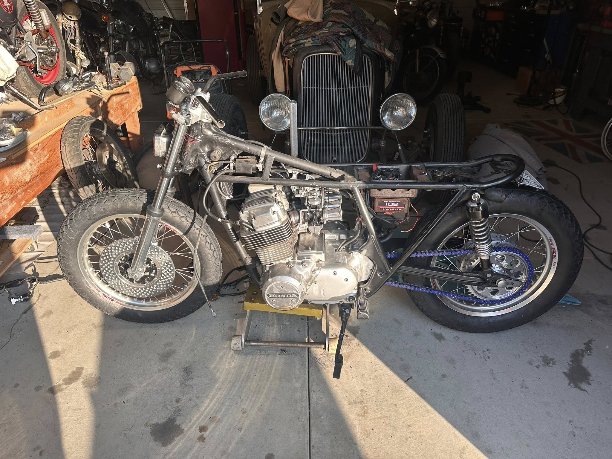 Well, after 25 years here in Southern California and creating over 50 machines in many guises, each old resurrection I try and get into and finish a non-running left alone Honda, becomes harder and harder to know what to do with her these days, but if I found super clean models, then I could just retore them to their stock configuration – But that’s not the case most of the time, as I usually have basket cases, boxes of old parts that I have picked up over the years and then some people that want their old 500 pounder out of the garage as the wife cannot get to the dryer anymore without tearing a pantyhose etc. So, every time I drag a rolling frame home, or a rusty pallet of old parts, i try and decide what i shall create and also name as the bike always has to have some sort of title, of which i can then remember if somebody enquires about a machine that I built years ago.
