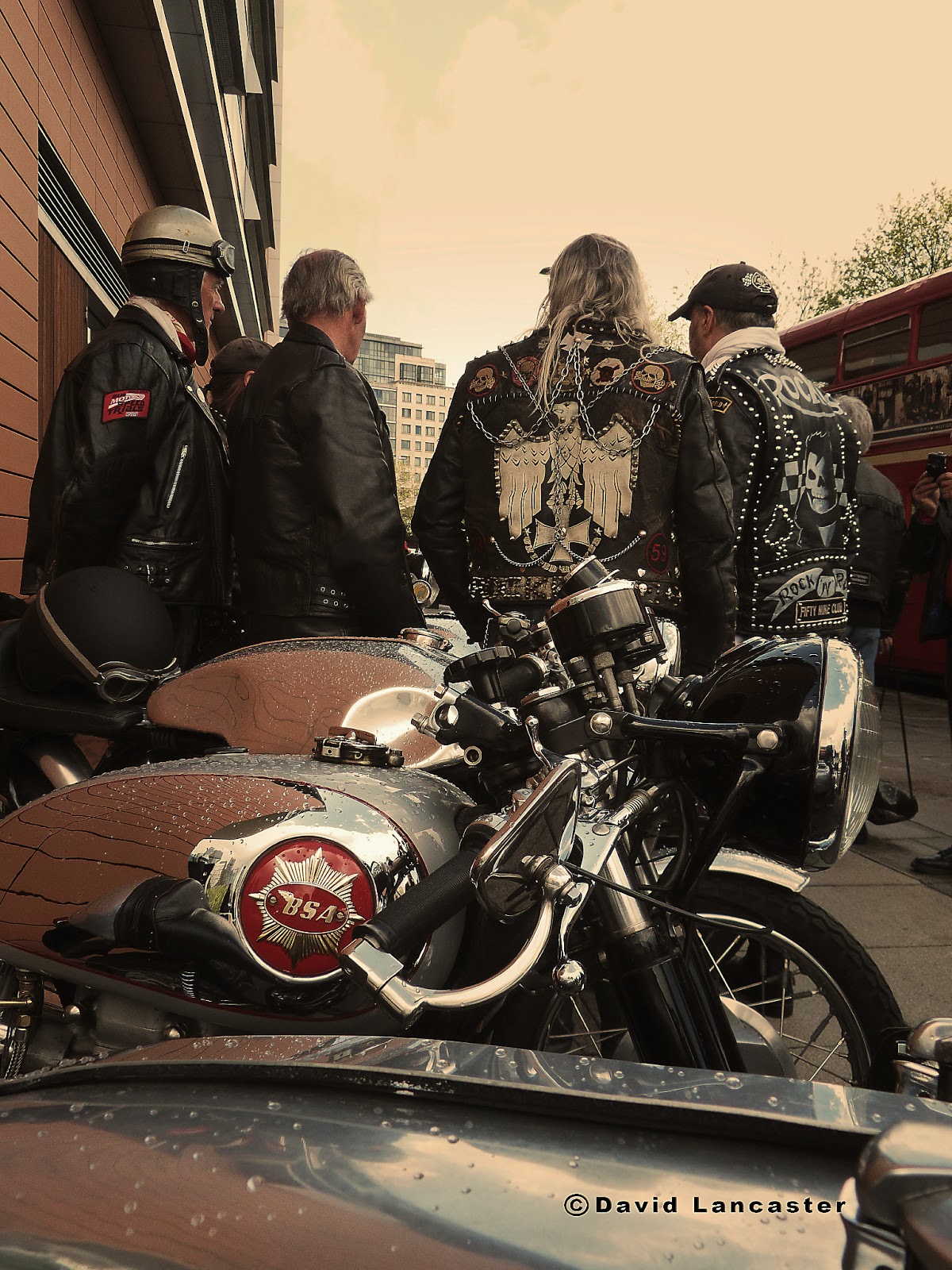 Saturday, May 4th: Paddington, west London. BSAs, Triumphs, Nortons and Norvins appear. Rain subsides and riders gather.