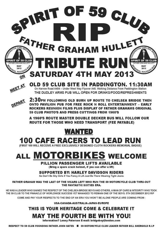 So the plot of land – now a car park – on which Club members gave three cheers in memory of Father Hullett has a key place in British two-wheeled culture. From ground-breaking film screenings, to the genesis of both the style and personnel of the original Rockers’ Reunion runs 20 years later, Paddington may have changed – but the style, lust for the road and the independent spirit of men such as Graham Hullett lives on.