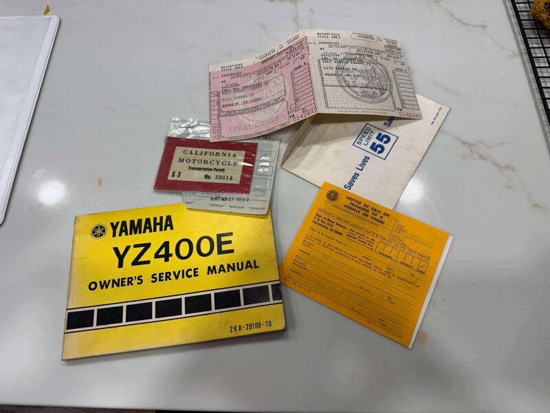 I see a few have sold at the auctions and ALL of them are sold with just a bill of sale, but not me, I have the genuine original pink slip/Title for this and the factory handbook, so a super rare opportunity to have a titled Motocross bike.