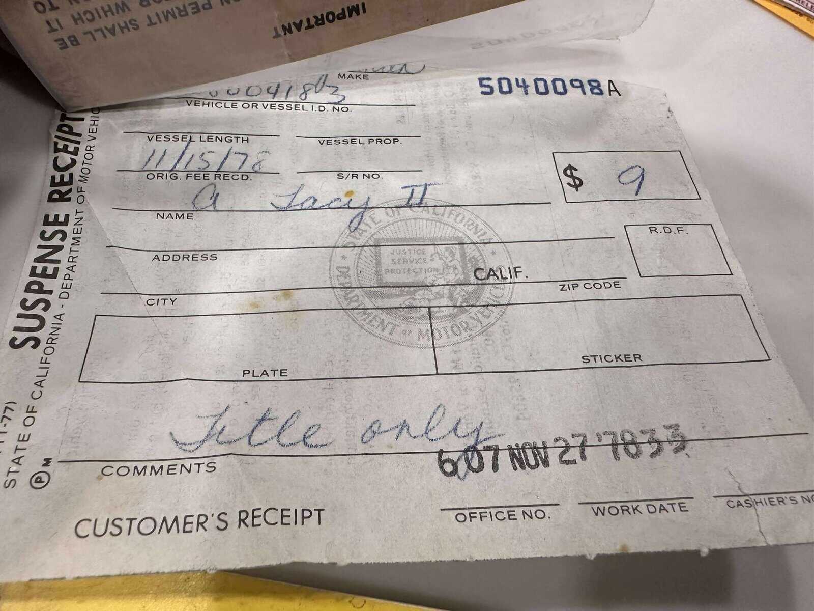 here is all the paper work that goes with this Classic Steed, you never get Titles with them usually as they are lost forever, still has original envelope from DMV.